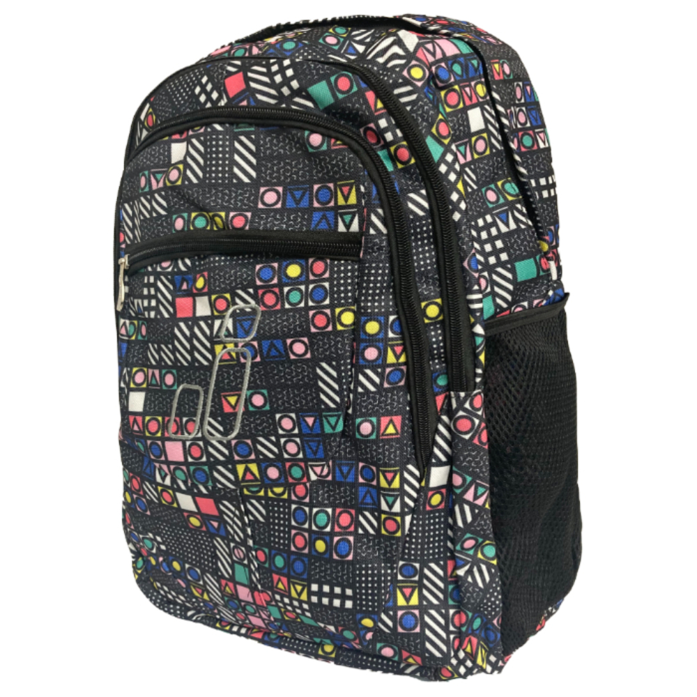 Trasera en malla con estructura metálica rigida que separa la espalda de la mochila facilitando la ventilación.