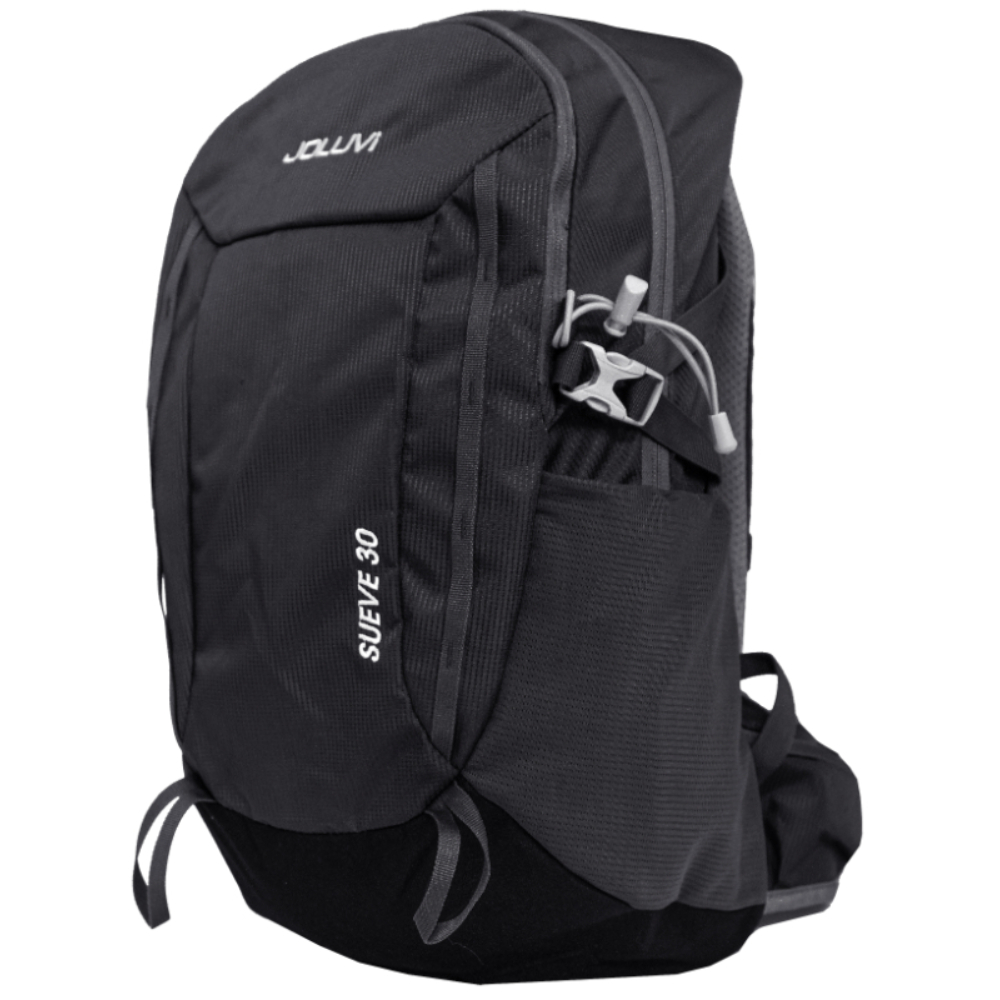 Hombreras ajustables preformadas en rejilla acolchada, cinta elastica para el pecho y cintura que aseguran un ajuste comodo.